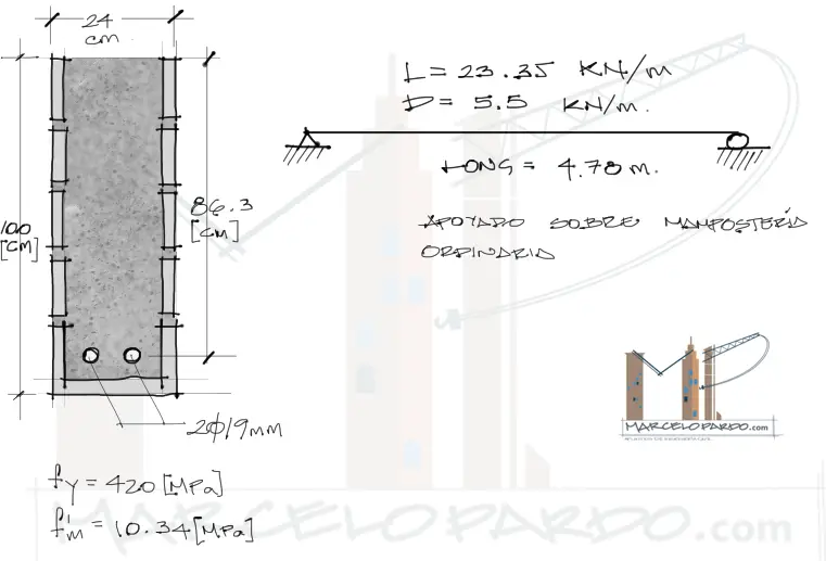 La resolución puede realizarse siguiendo la teoría del artículo: Resistencia a flexión de viga de mampostería Estructural.
